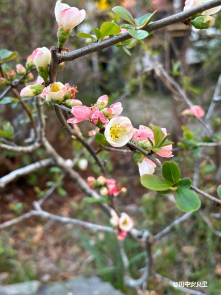 その他 | ・平安時代に渡来したといわれている。 ・名前の由来は中国名の木瓜(モッカ)の音が変化したものといわれている。 ・多くの園芸品種があり、同じ株に紅色や白色の花をつける東洋錦、緋色の花が咲く緋の衣、八重咲大輪の白花が咲く大八洲などがある。 ・小枝には刺がある。 ・葉の展開前に開花する。 ・果実は長さ8~10cmのナシ状果で、7~8月に黄色に熟す。 ・干した果実は痛み止めなどの薬用にされる。 |